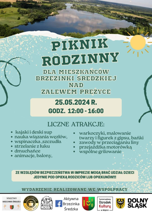 Organizatorzy zapraszają serdecznie mieszkańców Brzezinki Średzkiej na Piknik Rodzinny, który odbędzie się w sobotę 25 maja nad zalewem w Prężycach.