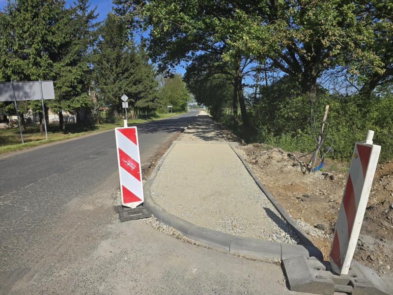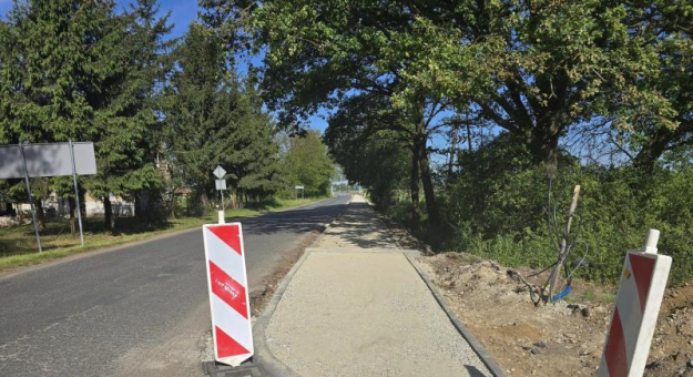 Trwają prace przy budowie ścieżki rowerowej i chodnika. Termin zakończenia przebudowy szacuje się na wrzesień 2024 roku.