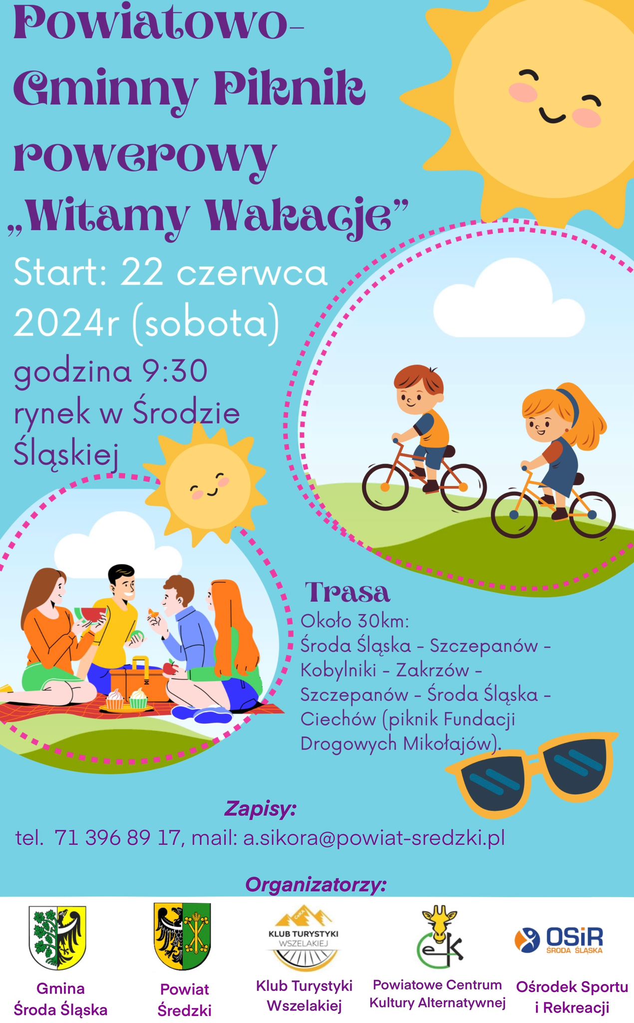 Powiat Średzki, Miasto i Gmina Środa Śląska, Powiatowe Centrum Kultury Alternatywnej - Środa Śląska i Osir Środa Śląska zapraszają do udziału w Powiatowo-Gminnym Pikniku rowerowym! Zapisy ruszają! Szczegóły na plakacie.