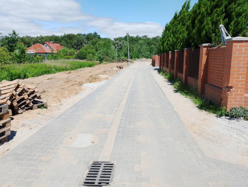 Zakres prac obejmuje wykonanie ok. 270 metrów drogi o nawierzchni z kostki betonowej wraz z pełną konstrukcją. Aktualnie trwają prace brukarskie.