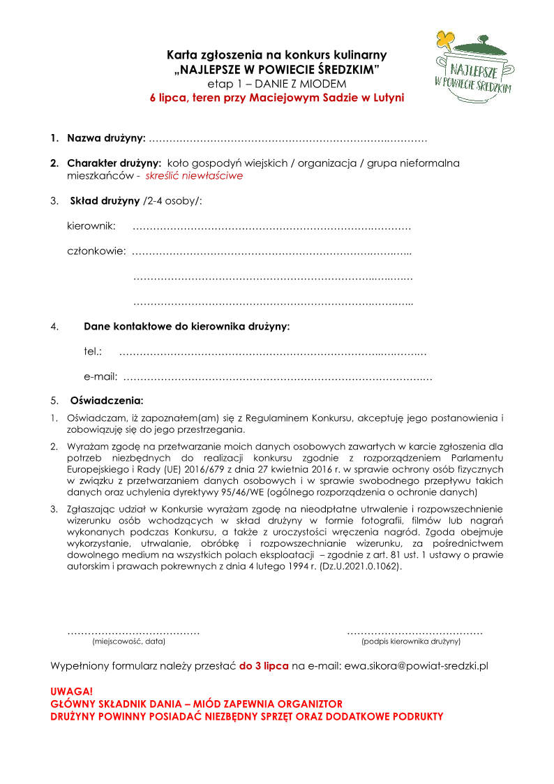 Zapraszamy do udziału! Karta zgłoszeń do pobrania