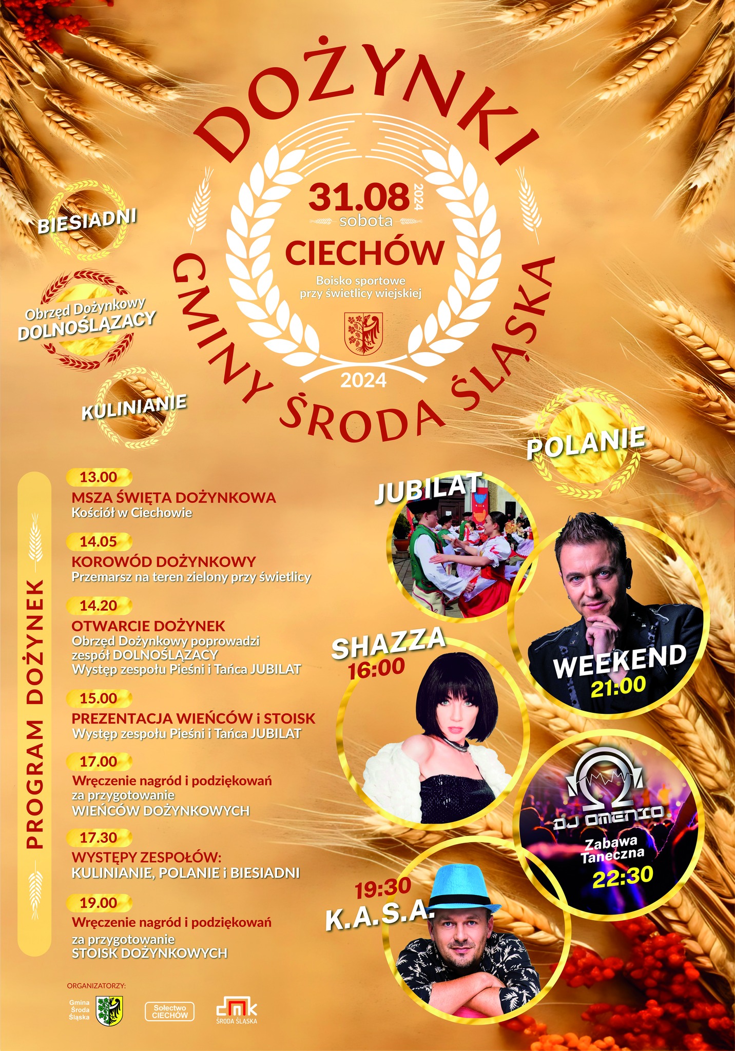 W tym roku Dożynki Gminy Środa Śląska odbędą się w Ciechowie. Tradycyjnie nie zabraknie muzycznej oprawy w rytmach disco polo.