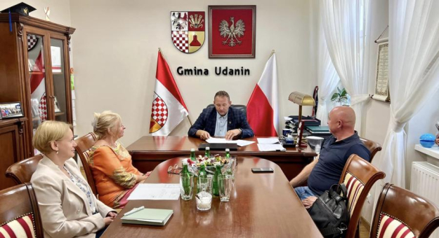 Wójt Gminy Udanin WojciechPłaziuk przy kontrasygnacie Skarbnika Gminy Bożeny Trawińskiej podpisał umowę na wykonanie robót budowlanych dla zadania pn. Termomodernizacja elewacji budynku użyteczności publicznej w Konarach.