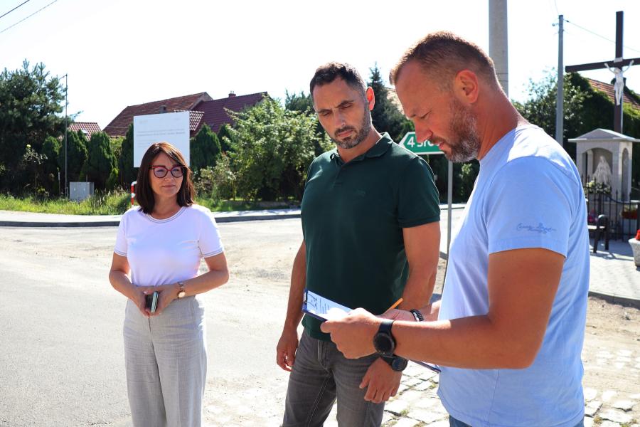 Zakończyła się budowa chodnika przy drodze powiatowej w Jastrzębcach. Przedstawiciele Gminy i wykonawcy dokonali odbioru technicznego inwestycji.