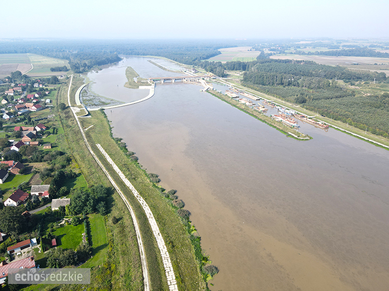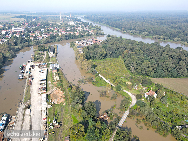 Kanał portowy, Średzka Woda oraz Odra w miejscowości Malczyce - stan na 18.09.2024, godz. 10.30