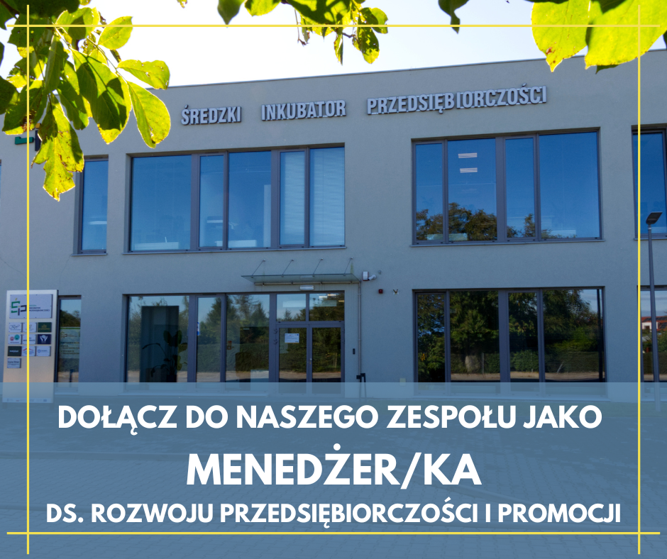 Anna Klimczuk-Malczewska – Prezes Średzkiego Inkubatora Przedsiębiorczości zaprasza do aplikowania na stanowisko menedżera/ki ds. rozwoju przedsiębiorczości i promocji.