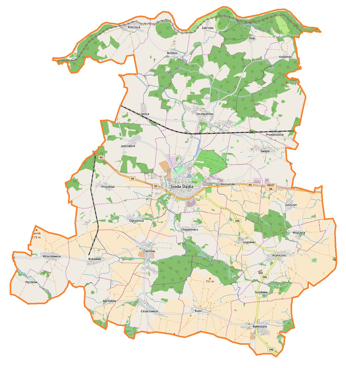 Granica obszaru objętego planem ogólnym obejmuje granice administracyjne gminy Środa Śląska z wyłączeniem terenów zamkniętych innych niż ustalane przez ministra właściwego do spraw transportu.