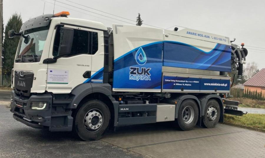9 grudnia br. Zakład Usług Komunalnych Sp. z o.o. w Miękini odebrał samochód specjalny do czyszczenia kanalizacji z odzyskiem wody.