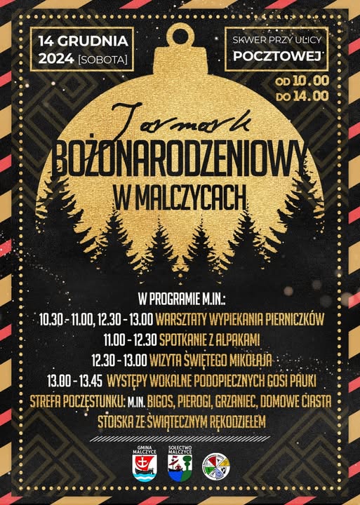 Już w najbliższą sobotę Malczyce staną się miejscem świątecznych atrakcji! Na skwerze przy ul. Pocztowej odbędzie się Jarmark Bożonarodzeniowy.