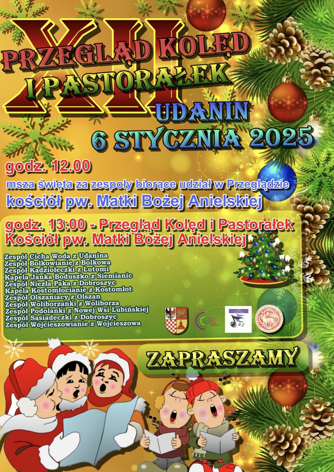 6 stycznia po raz dwunasty odbędzie się w Udaninie wspólne kolędowanie z udziałem zespołów ludowych.