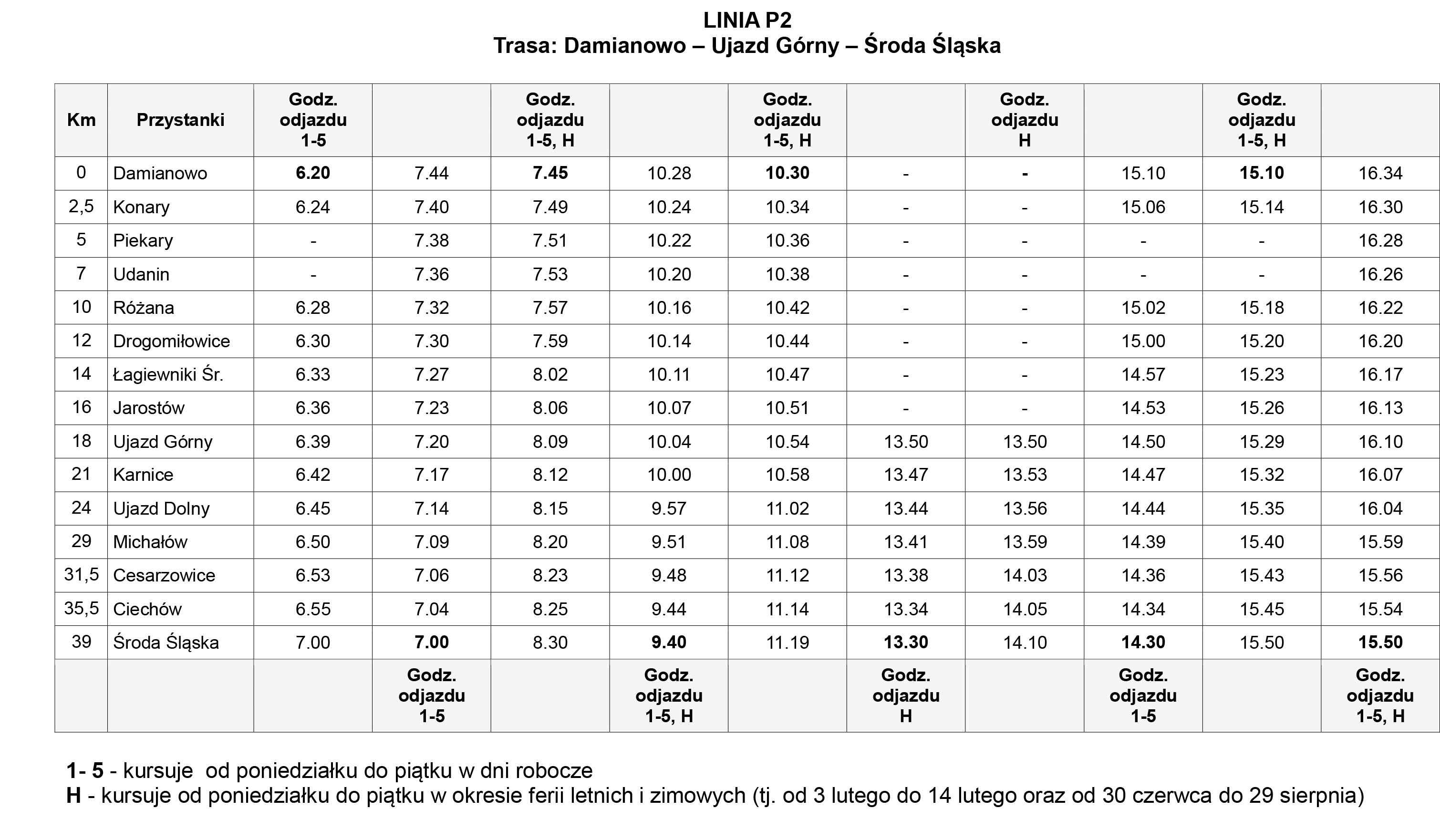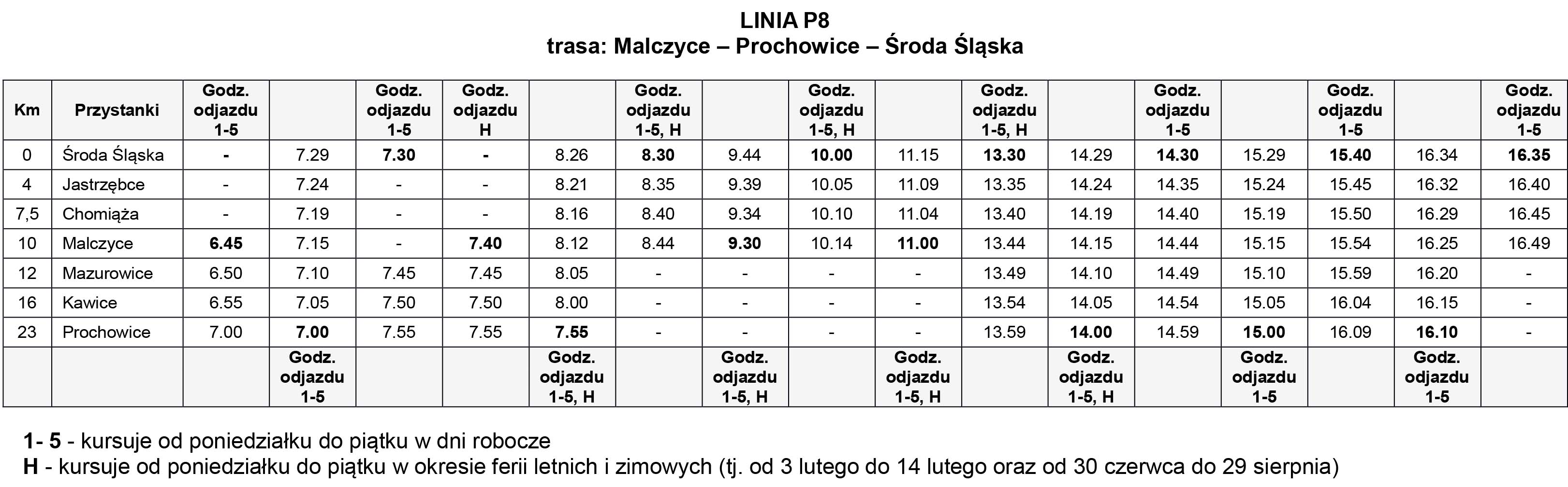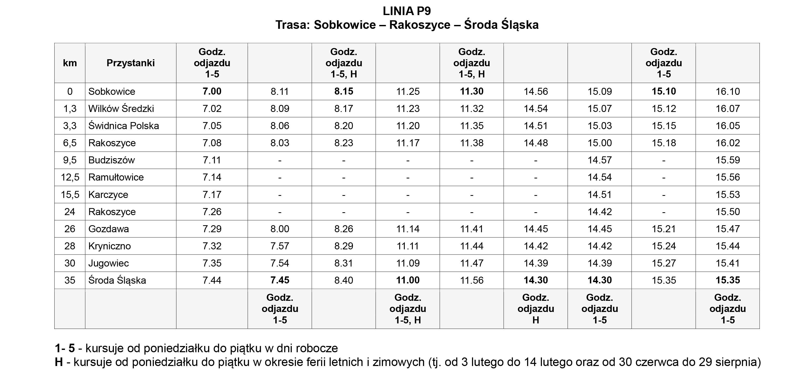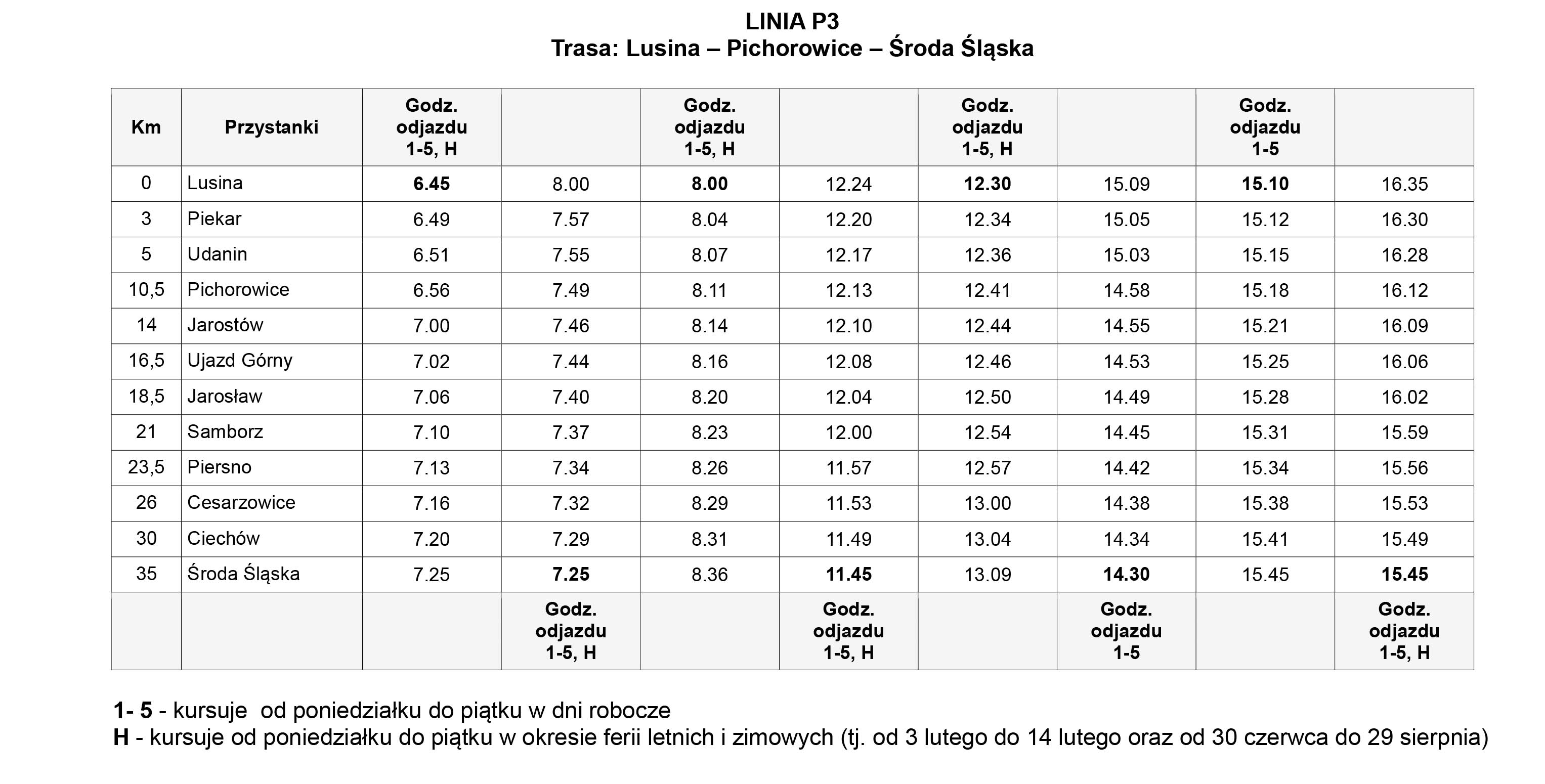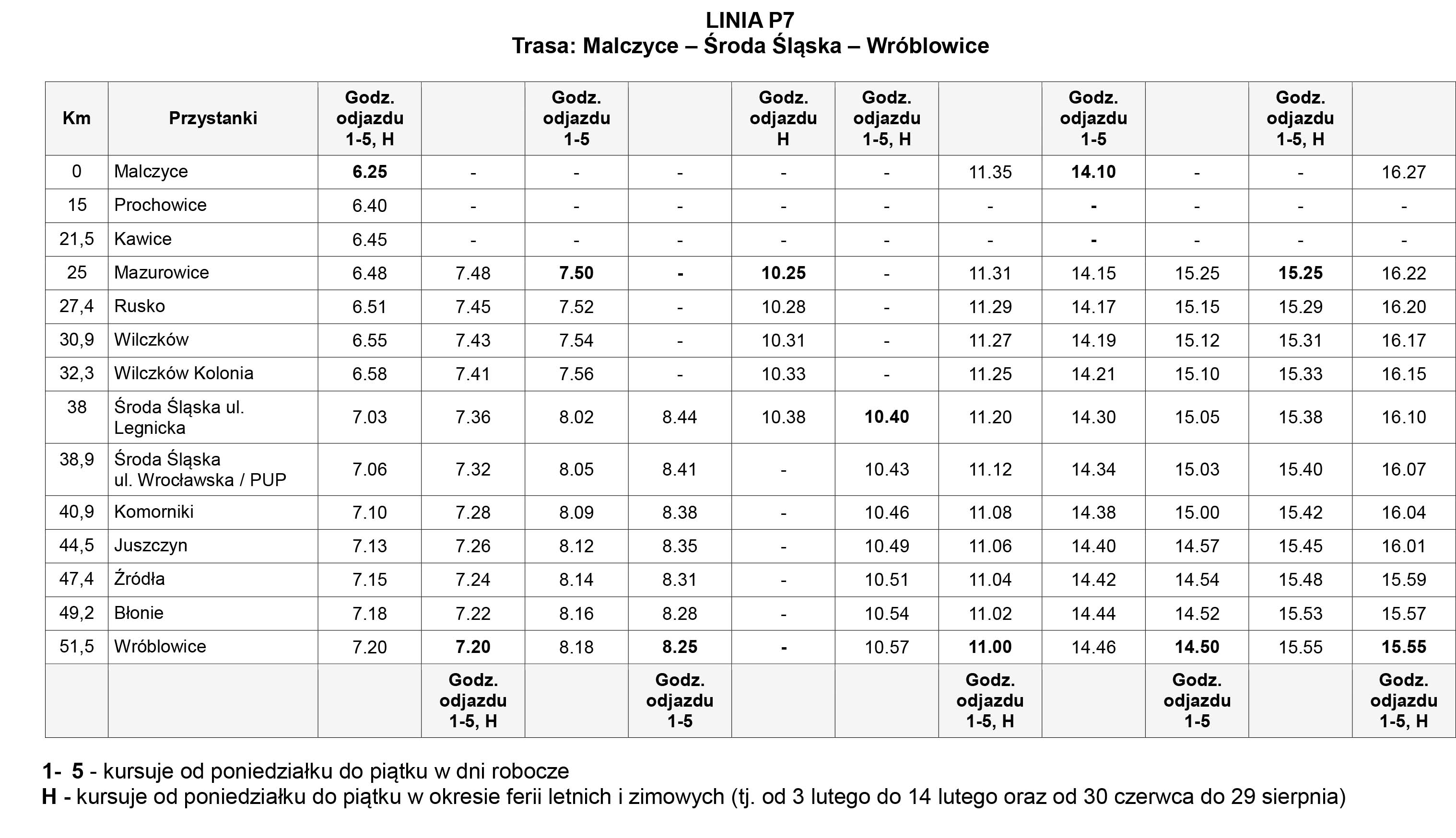 Jednocześnie informujemy, że linie P1, P2, P3, P4, P6, P7 i P8 obsługiwać będzie Przedsiębiorstwo Wielobranżowe Anna Sadowska z Wrocławia, natomiast linie P5 i P9 obsługiwać będzie firma Transport Osobowo-Towarowy Stefan Ślusarski, Malczyce.