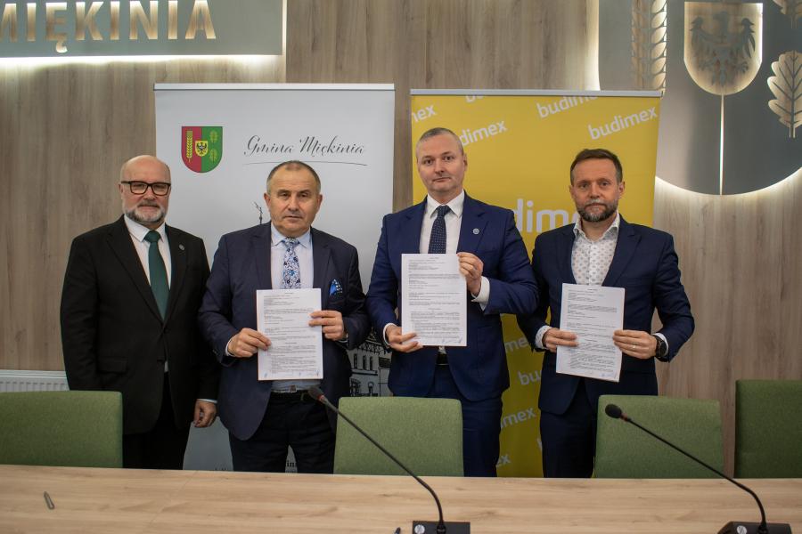 Podpisanie kluczowej trójstronnej umowy pomiędzy Gminą Miękinia, Legnicką Specjalną Strefą Ekonomiczną a firmą Budimex S.A. – inwestycja na rzecz dalszego rozwoju gminy.
