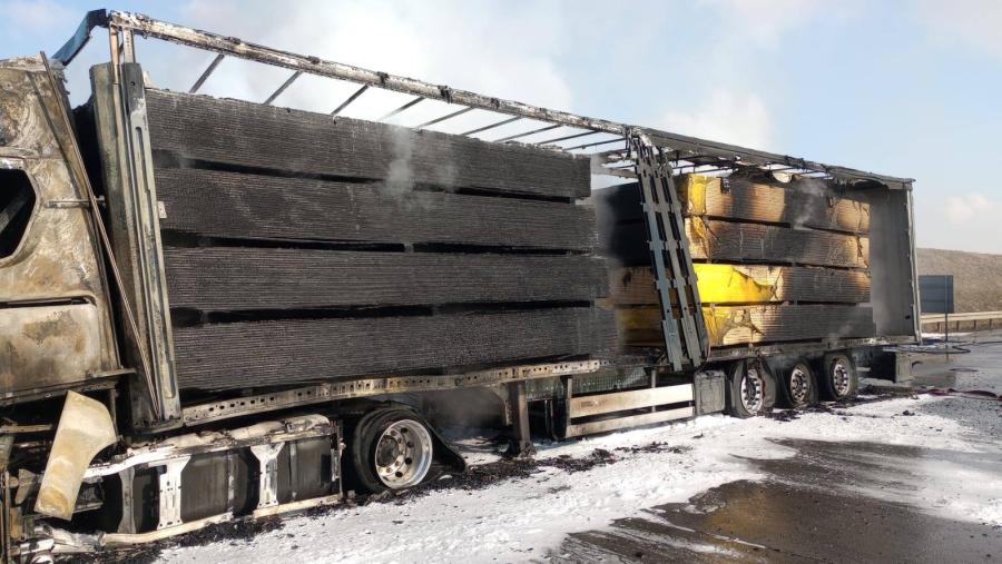 W dniu 17.02.2025 roku o godzinie 10:17 Dyżurny Stanowiska Kierowania przyjął zgłoszenie o pożarze samochodu ciężarowego z naczepą na 129 km autostrady A4 w kierunku Legnicy.