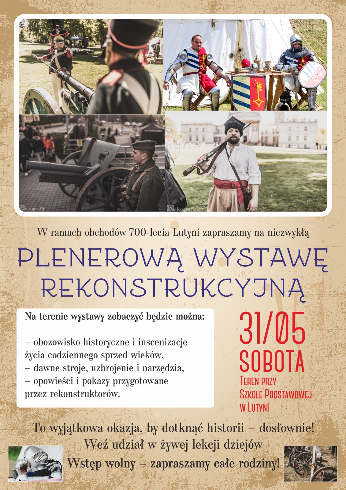 Na zewnątrz natomiast czekać będzie plenerowa wystawa rekonstrukcyjna, przygotowana w ramach obchodów 700-lecia Lutyni. Historyczne obozowisko, inscenizacje życia codziennego sprzed wieków, dawne stroje, uzbrojenie i pokazy przygotowane przez pasjonatów rekonstrukcji historycznej pozwolą dosłownie dotknąć przeszłości. To żywa lekcja historii – nie tylko dla dzieci!