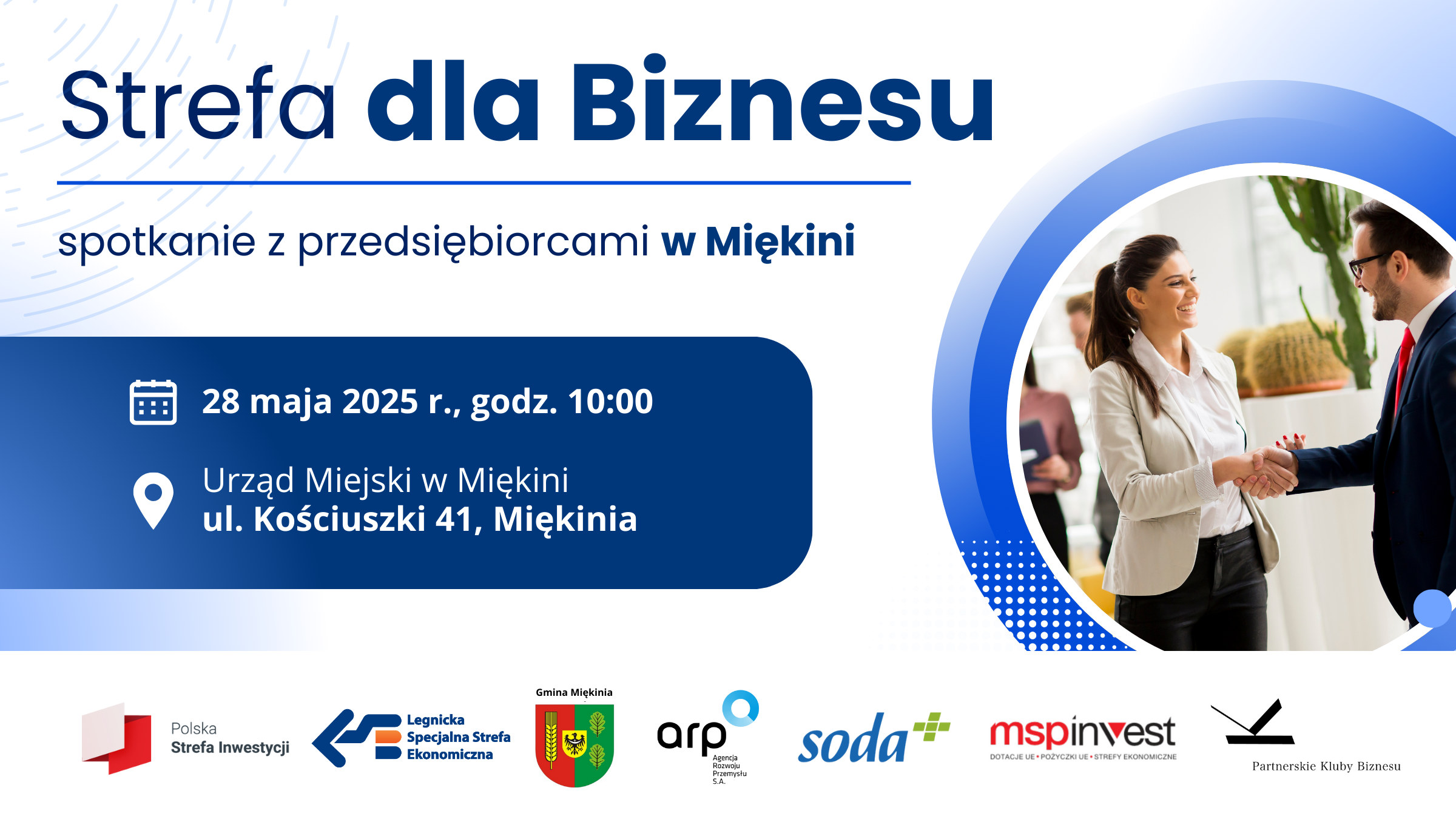 Już 28 maja o godz. 10:00 w Urzędzie Miejskim w Miękini odbędzie się kolejna edycja wydarzenia „Strefa dla Biznesu”, skierowanego do mikro, małych i średnich przedsiębiorców zainteresowanych rozwojem i inwestycjami w regionie.