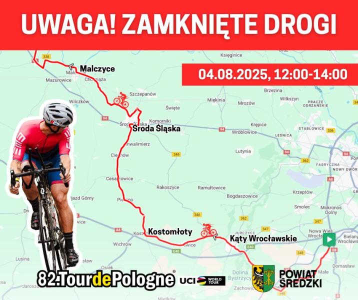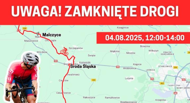 4 sierpnia w godzinach 12:00–14:00 na całej trasie przejazdu mogą występować utrudnienia i całkowite zamknięcia dróg.