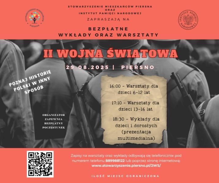 29 sierpnia 2025 roku sala w Piersnie stanie się miejscem wyjątkowego spotkania z historią. Instytut Pamięci Narodowej poprowadzi bezpłatne warsztaty edukacyjne dla dzieci i młodzieży oraz wykłady dla dorosłych.