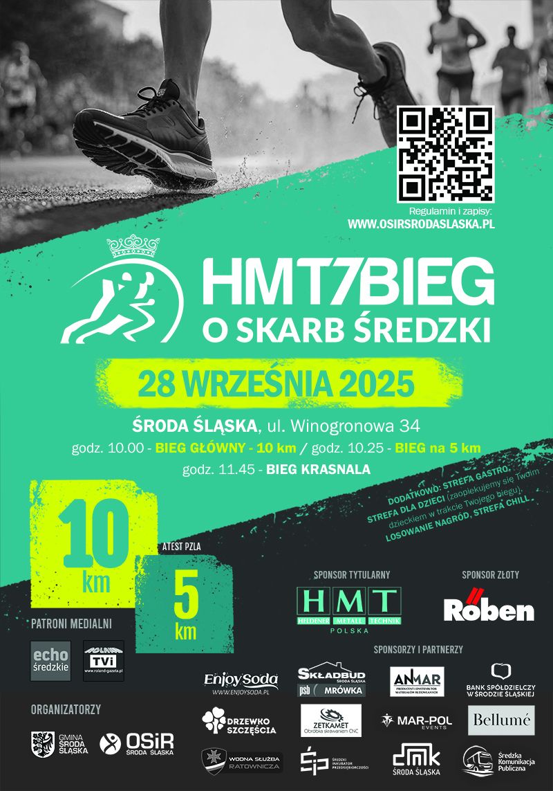 28 września 2025 roku ulice Środy Śląskiej ponownie wypełnią się biegaczami i kibicami. Tego dnia odbędzie się HMT VII Bieg o Skarb Średzki.