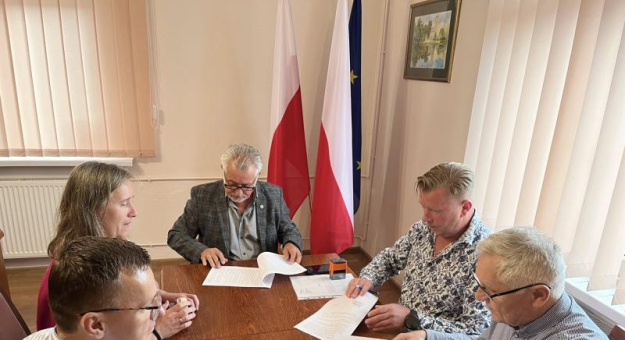 15 września 2025 r. Wójt Gminy Kostomłoty – Edward Kulig oraz Skarbnik – Rafał Hossa podpisali umowę z firmą FreeKids s.c., wyłonioną w postępowaniu przetargowym, która zrealizuje inwestycję.