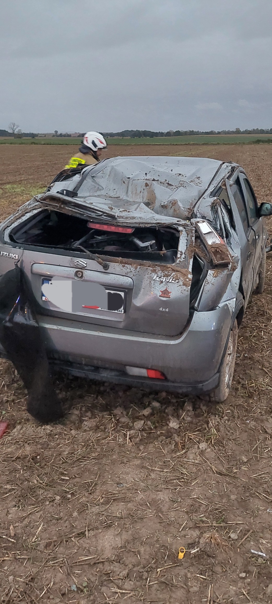 Jak wynika ze wstępnych ustaleń, kierująca samochodem osobowym marki Suzuki nie dostosowała prędkości do warunków panujących na drodze. Na łuku drogi kobieta straciła panowanie nad pojazdem, który wypadł z jezdni na pobliskie pole, a następnie dachował.