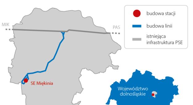 W ramach projektu wyznaczono lokalizację nowej stacji elektroenergetycznej Miękinia oraz przebieg planowanych wprowadzeń dwutorowej linii 400 kV do istniejących sieci.