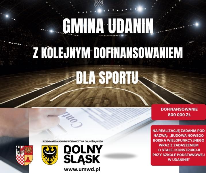 Gmina Udanin otrzymała dodatkowe dofinansowanie w wysokości 800 000 zł z Urzędu Marszałkowskiego Województwa Dolnośląskiego w ramach programu „Dolnośląski Fundusz Rozwoju Bazy Sportowej – edycja 2025”.