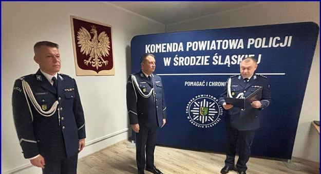 W Komendzie Powiatowej Policji w Środzie Śląskiej odbyła się uroczystość związana z przejęciem stanowiska I Zastępcy Komendanta Powiatowego Policji w Środzie Śląskiej przez podinsp. Piotra Marcinowa.