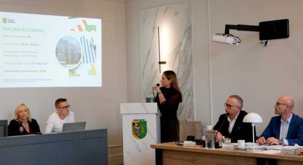 Prezentacje obejmującą działania urzędu oraz jednostek organizacyjnych przedstawiła kierownik wydziału rozwoju Agnieszka Pichowicz. W 2025 roku udało się zrealizować 42 projekty o wartości ponad 29 mln zł, z czego 18,4 mln zł stanowiły środki zewnętrze, a 4,6 mln zł dotacje od Gmin Powiatu. Najwięcej środków pozyskano na inwestycje drogowe (13 projektów, 13,8 mln zł dofinansowania). Kolejne obszary to infrastruktura (10 / 3 mln zł), edukacja (9 / 3 mln zł) i projekty społeczne (7 / 1,2 mln zł)