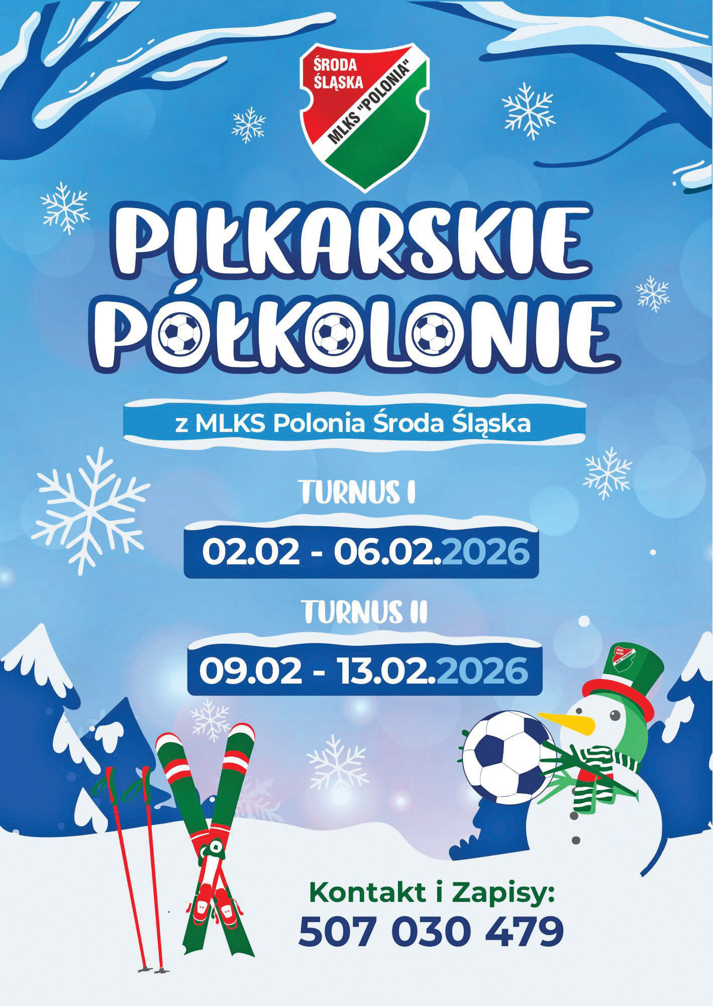 MLKS Polonia Środa Śląska zaprasza dzieci i młodzież na zimowe „Piłkarskie Półkolonie”. To propozycja dla wszystkich, którzy ferie zimowe chcą spędzić aktywnie, pod okiem trenerów i w sportowej atmosferze.