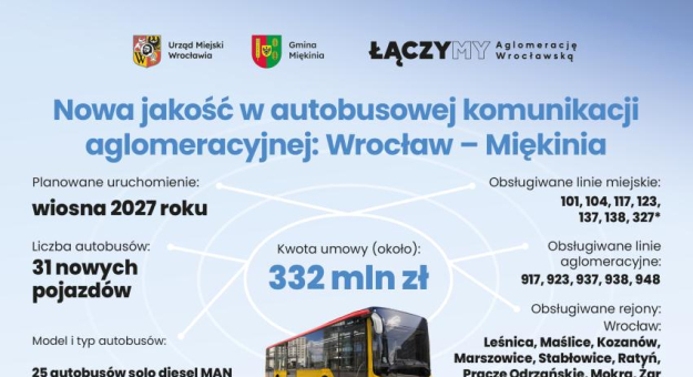 Wspólnie z miastem Wrocław oraz przewoźnikiem Kłosok sp. z o.o. zrealizowana zostanie umowa o wartości blisko 332 mln zł.