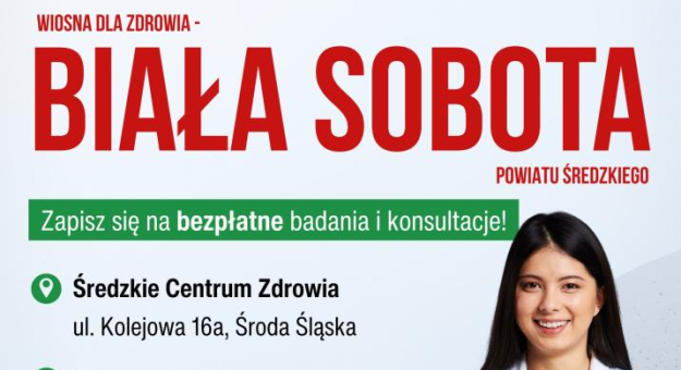 W pierwszy dzień wiosny, 21 marca w godzinach 10:00–14:00 zapraszamy Was na wydarzenie „Wiosna dla Zdrowia – Biała Sobota Powiatu Średzkiego” pod Patronatem Honorowym Wojewody Dolnośląskiego Anny Żabskiej.
