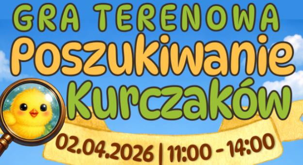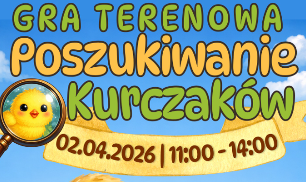 Już 2 kwietnia 2026 roku w Parku Miejskim przy fontannie odbędzie się wielkanocna gra terenowa „Poszukiwanie Kurczaków”.