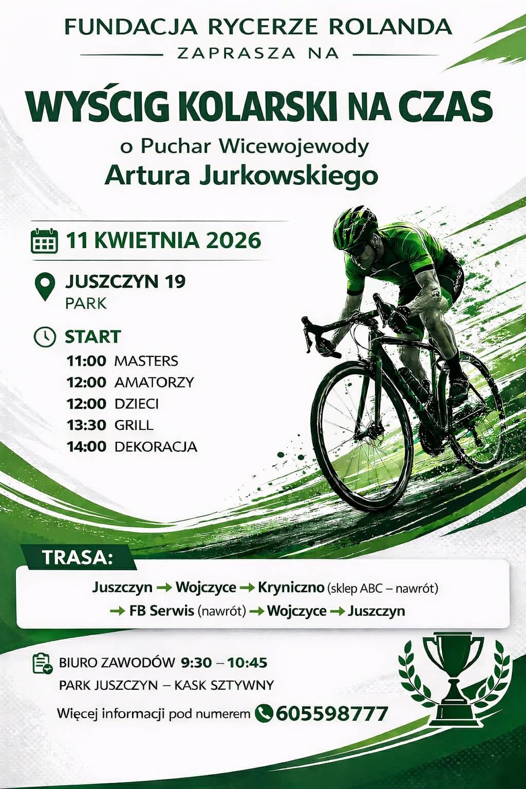 11 kwietnia 2026 roku w Juszczynie odbędzie się wyścig kolarski na czas o Puchar Wicewojewody Artura Jurkowskiego.
