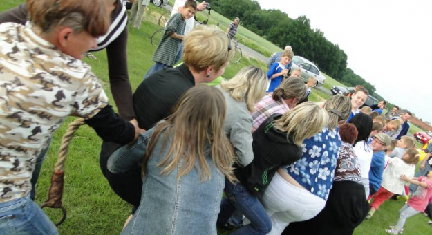 Zadbano także o rozrywkę dla zgromadzonych tłumnie na boisku mam. Zmierzyły się one ze swoimi pociechami w konkursie przeciągania liny. Przy niewielkiej pomocy dwóch ojców zwyciężyły dzieci. Oczywiście mamy tak jak i ich maluchy zostały obdarowane atrakcyjnymi nagrodami za wysiłek i ducha sportowego.