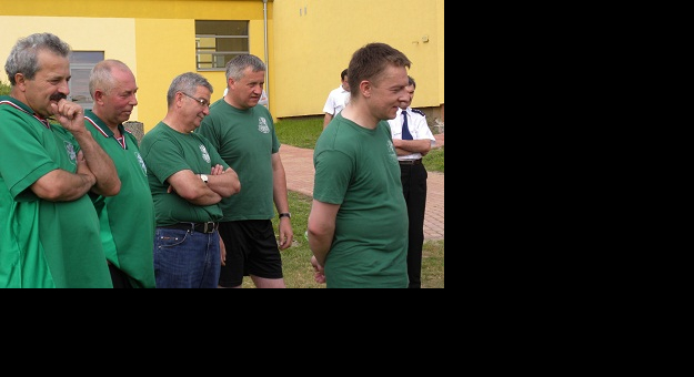 Radni: Kryciński, Hamkało, Sozański, Kruszelnicki, Sigiel, Ruciński, Bogucki i Skóra (radny Fink dołączyl nieco później) - 8/15 Rady Miejskiej w Środzie Śląskiej z burmistrzem Bogusławem Krasuckim - ostatnie sekundy przed otwierającymi Turniej rozgrywkami w nogę.