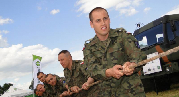 Jak na prawdziwy piknik rodzinny przystało były także konkurencje dla dorosłych mieszkańców Juszczyna, zwłaszcza dla panów. Przeciąganie liny zgromadziło wielu widzów, tym bardziej, że drużyna mieszkańców stanęła w pojedynku z żołnierzami. Po zaciętej rywalizacji zwyciężyli panowie z Juszczyna. Nie mniej interesująca była konkurencja w rżnięciu piłą. Okazało się, że sztuka ta znana jest nielicznym i trzeba mieć duże doświadczenie aby w jak najkrótszym czasie okazały pień drzewa przerżnąć.