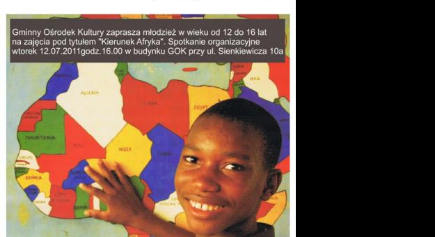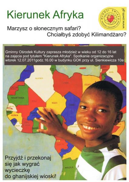 Gminny Ośrodek Kultury w Malczycach serdecznie zaprasza młodzież w wieku 12-16 lat do wzięcia udziału w projekcie pn.” Kierunek Afryka – Pilotażowy program zajęć dla młodzieży na edukacyjnej mapie Europy”.