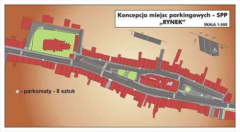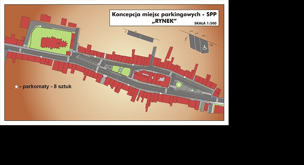 Ogółem zaplanowano ok. 200 miejsc parkingowych w tym kilka zarezerwowano dla osób niepełnosprawnych. Poniżej prezentujemy mapkę z rozmieszczeniem miejsc parkingowych i parkomatów.