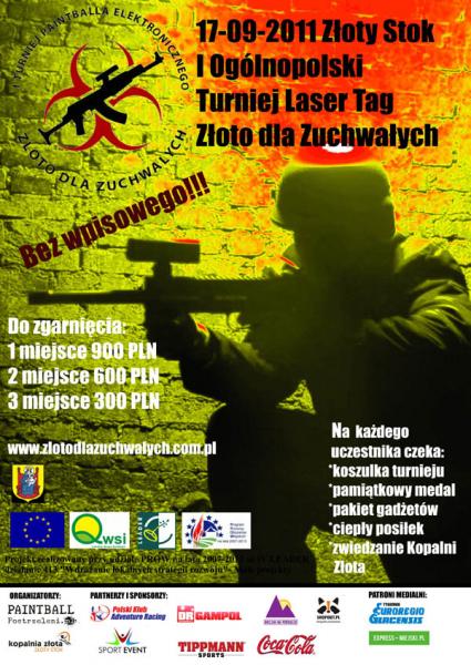 W Złotym Stoku dokładnie 17 września odbędzie się I Turniej Paintballa Elektronicznego "Złoto dla Zuchwałych". Organizatorem turnieju jest firma MILITARIA, a pomaga jej AZYMUT oraz KOPALNIA ZŁOTA