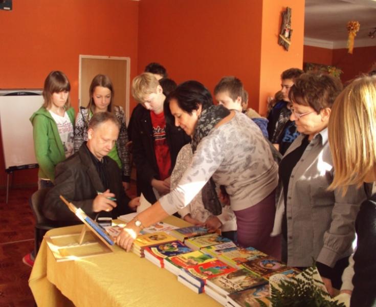 Młodzież uważnie słuchała bajek czytanych przez samego autora, następnie autor zadawał pytania na ich temat. Za prawidłową odpowiedź uczniowie otrzymywali upominek w postaci książki. Spotkanie przebiegało w ciepłej i przyjacielskiej atmosferze. Wszystkich wprawiło w wesoły nastrój wspólne śpiewanie piosenki autorstwa Mariusza Niemyckiego o kurczaczku Czaczku. Na zakończenie młodzież ustawiła się w kolejce po dedykację i autograf. Można też było zakupić książki autora.