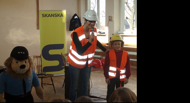 Na zagrożenia związane z pracami ziemnymi, wykopami oraz wszelkimi pracami budowlanymi zwrócili uwagę przedstawiciele firmy SKANKA, która buduje położony niedaleko szkoły basen. Dzieci poznały znaki ostrzegające o prowadzonych robotach, dowiedziały się, jak ważną rolę spełniają elementy odblaskowe oraz poznały wymagany ubiór pracownika budowlanego. Dzieci doskonale rozpoznawały prezentowane na slajdach duże maszyny i pojazdy budowlane.