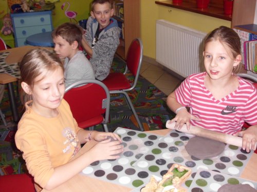 Zajęcia rozpoczęły się krótkim wykładem na temat historii gliny oraz poznaniem materiału. Uczestnikami było 40 młodych czytelników Działu Dziecięcego. Podczas warsztatowej części zajęć dzieci ulepiły z gliny aniołki przy pomocy specjalnych narzędzi do wyrobu prac ceramicznych. Wykonane prace zostaną wypalone i oddane uczestnikom pod koniec grudnia.