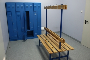 W kontenerze wydzielone są trzy pomieszczenia. Jedno dla sportowców, drugie dla sędziów, a trzecie to pomieszczenie socjalne. W tym pomieszczeniu znajduje się: WC, dwie umywalki, kabina prysznicowa oraz bojler elektryczny. W każdym pomieszczeniu jest okno z żaluzjami antywłamaniowymi, drzwi metalowe oraz instalacja elektryczna i grzejniki.