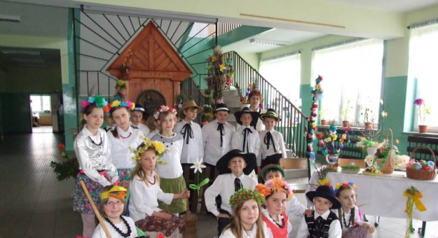 Trzecioklasiści z wielkim zaangażowaniem prezentowali zgromadzonym tradycje wielkanocne; Grali na dzwonkach wielkanocne przyśpiewki i śpiewali wesołe piosenki. Kolorowe palmy, świąteczne, chrześcijańskie symbole i tradycyjne stroje, przygotowane przez opiekunów, uczniów i ich rodziców, stanowiły piękną scenografię, wprowadzającą wszystkich w atmosferę, pełnych radości i nadziei chrześcijańskiej świąt Zmartwychwstania Pańskiego. Maluchy obdarowały dyrekcję szkoły oraz gości, własnoręcznie ozdobionymi przez ich mamy jajkami. Na zakończenie apelu, minutą ciszy uczczono VII rocznicę śmierci Wielkiego Polaka Jana Pawła II. Życzenia radosnych i błogosławionych świąt Wielkiej Nocy, złożyła dyrektor Bożena Basa. Bardzo miłym akcentem uroczystości była gra na rogu przez myśliwego z Koła Łowieckiego w Świdnicy. Myśliwi na zaproszenie Anny Janus i Doroty Prochery odwiedzili szkołę, aby rozdać dzieciom nagrody w konkursie na najpiękniej wykonaną budkę lęgową. Uczniowie z zachwytem słuchali brzmień instrumentu, nagradzając grającego wielkimi brawami.