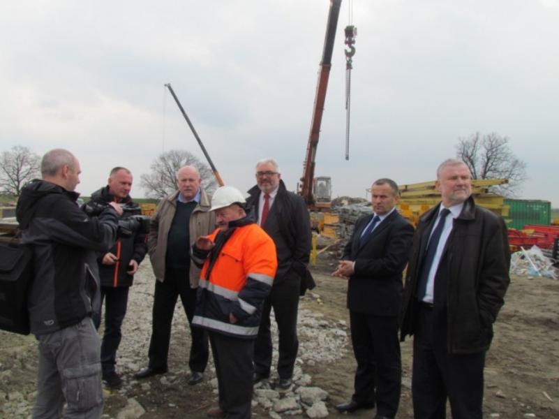 W piątek 13 kwietnia na budowę mostu na Odrze przyjechali wojewoda dolnośląski Aleksander Marek Skorupa, wicemarszałek województwa dolnośląskiego Jerzy Łużniak, dyrektor Dolnośląskiej Służby Dróg i Kolei we Wrocławiu Roman Głowaczewski, wiceburmistrz Brzegu Dolnego Paweł Pirek oraz wójt gminy Miękinia Jan Marian Grzegorczyn.