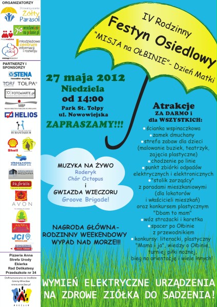 Misją tej imprezy, jak i całego Stowarzyszenia jest integracja pokoleń i działalność na rzecz społeczności lokalnej. Chcemy integrować mieszkańców i aktywizować naszą dzielnicę. Na Ołbinie obecnie mało się dzieje i jest to jedno z bardziej zaniedbanych osiedli we Wrocławiu, jednocześnie dość liczne – twierdzi Marta Świtoń, koordynator ds. festynu Stowarzyszenia Żółty Parasol, na co dzień prowadząca Klub Młodzieżowy na Ołbinie – Organizacja takiego festynu jest super pomysłem, ponieważ z roku na rok przychodzi na niego coraz więcej ludzi i bierze udział w licznych konkursach integracyjnych.