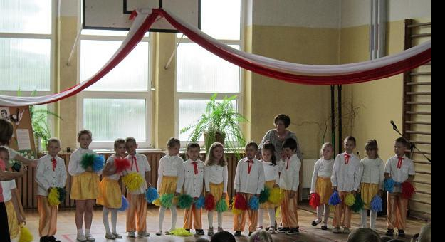 Pani dyrektor zakończyła swoje wystąpienia życzeniami skierowanymi do wszystkich dzieci - 1 czerwiec - w dniu ich święta. Dalsza część obchodów usłana była występami uczniów szkoły podstawowej i przedszkola. Uczniowie i zaproszeni goście podziwiali kunszt aktorski w wykonaniu szkolnej grupy teatralnej „Całkiem atrakcyjna paczka” w przedstawieniu „Tekturowe miasteczko”. Wiersze Marii Konopnickiej z wdziękiem recytowały Aleksandra Gabor oraz Maja Kuprowska, natomiast Agnieszka Krzyżak zachwyciła występem wokalnym w piosence - Adele - Someone Like You. Grupa wokalno-taneczna pod przewodnictwem Teresy Błądek zaprezentowała układ choreograficzny "Taniec krasnali" oraz pieśń do wiersza Marii Konopnickiej "Nasz dom". Nie zabrakło występów najmłodszych. Przedszkolaki pięknie wytańczyły Polkę, a pierwszaki zaprezentowały układ taneczno – muzyczny.