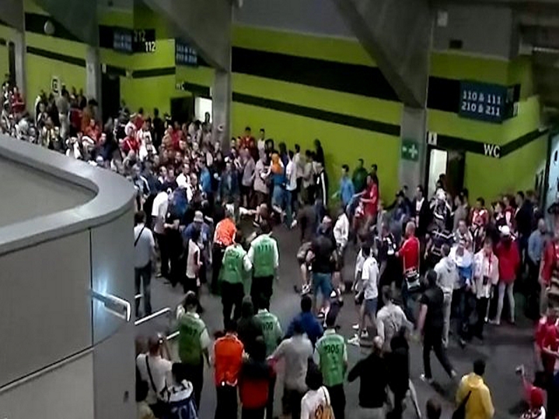 Film znajduje się w laboratorium kryminalistycznym. Widać na nim, jak kibice rosyjscy biją polskich stewardów w czerwonych kamizelkach. Jeden z nich leży na podłodze. Inny został kopnięty w twarz. Do incydentu doszło w chwili, kiedy jeden z kibiców rzucił racę. Podczas próby zatrzymania Rosjanin był agresywny i wszczął bójkę. Policja już zidentyfikowała kilka osób. W laboratorium trwają dalsze czynności. Zdjęcia z kamer trafią na przejścia graniczne i do banku policyjnej, międzynarodowej wymiany informacji.