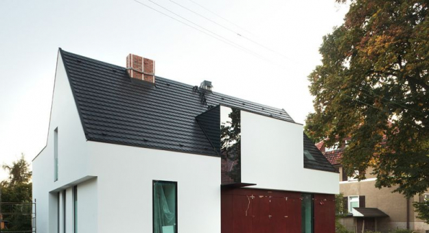 Ten dom był nieciekawym, przysadzistym budynkiem z lat 20. ubiegłego wieku. Główną ideą było wizualne odświeżenie budynku i nadanie mu nowoczesnego charakteru. Projekt jest minimalistyczny, ale ciepły i emocjonalny – mówi Anna Misiura z biura KMA Postawienie całej budowli na betonowym tarasie sprawia wrażenie, jakby dom unosił się na nim, przez co nadany został mu charakter lekkości. Wykończony jest dobrej jakości materiałami, a zamiast żaluzji w oknach wychodzących na taras, zdecydowaliśmy się posadzić w otworze pośrodku tarasu drzewo. To daje miłe wrażenie przebywania w zacienionym miejscu. Zależało nam na tym, żeby dom budził przyjazne, miłe emocje.