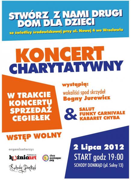 Celem koncertu jest uzbieranie odpowiedniej kwoty na wyjazd wakacyjny dla dzieci wrocławskiej świetlicy środowiskowej przy ul. Nowej 4 we Wrocławiu.